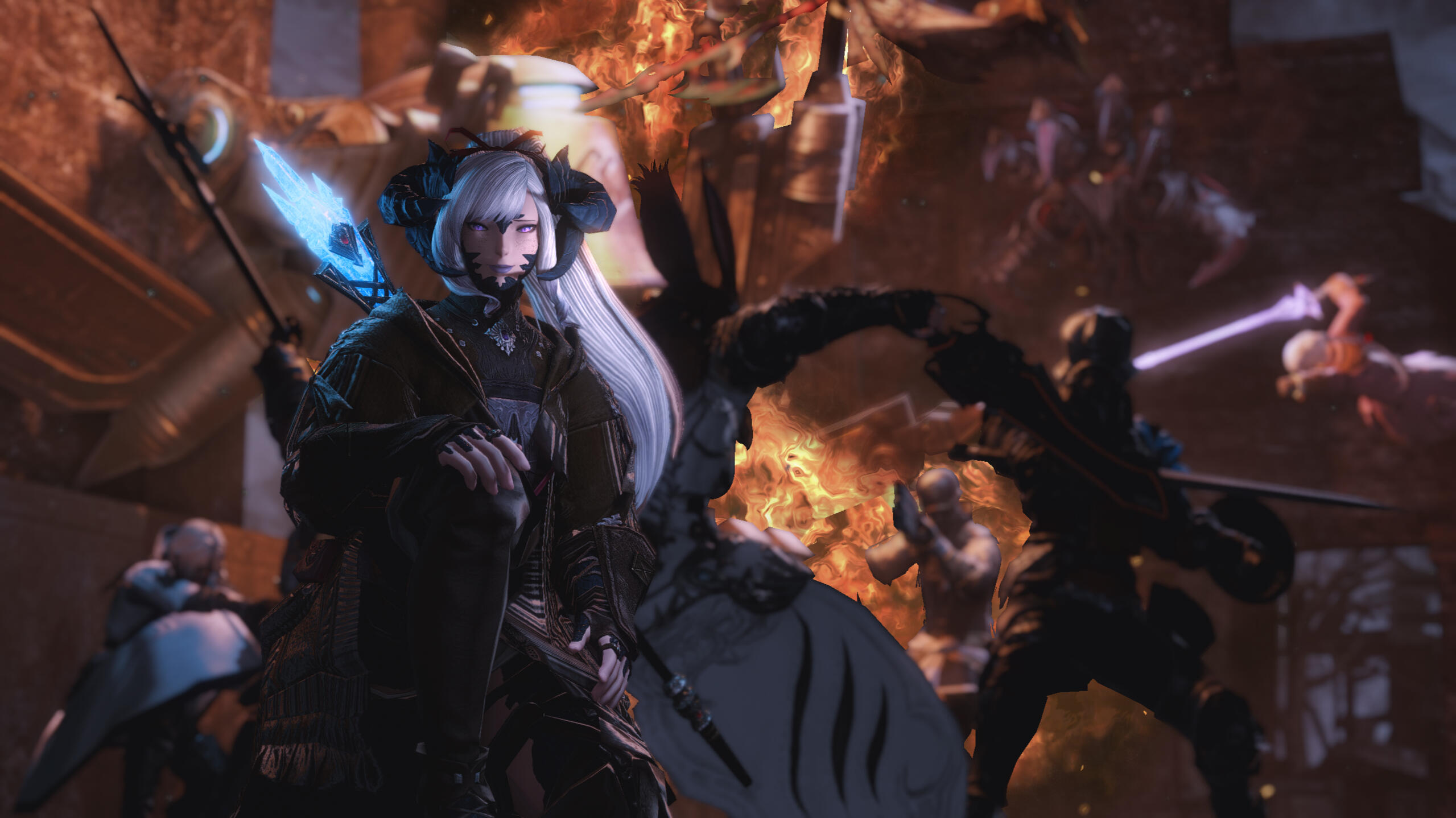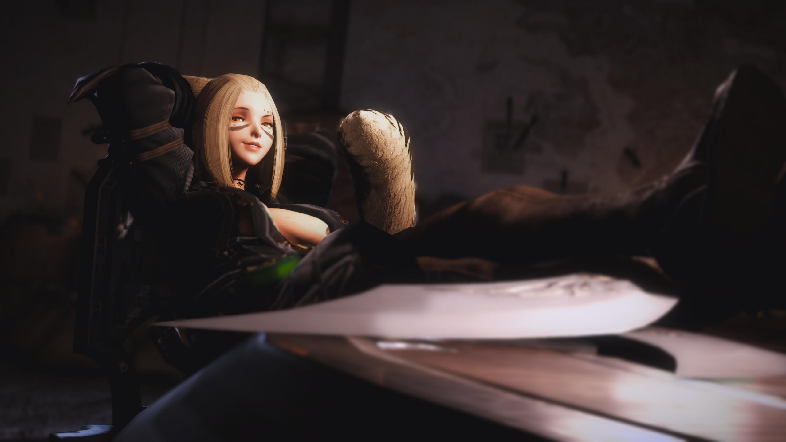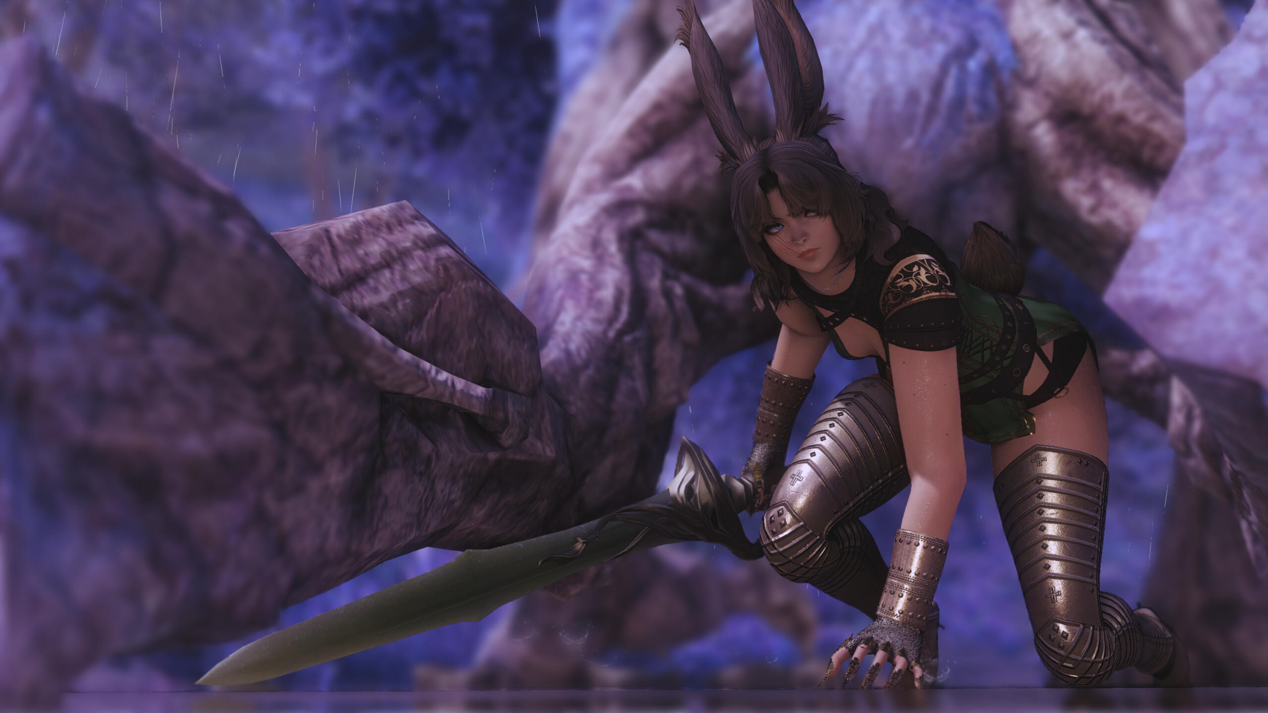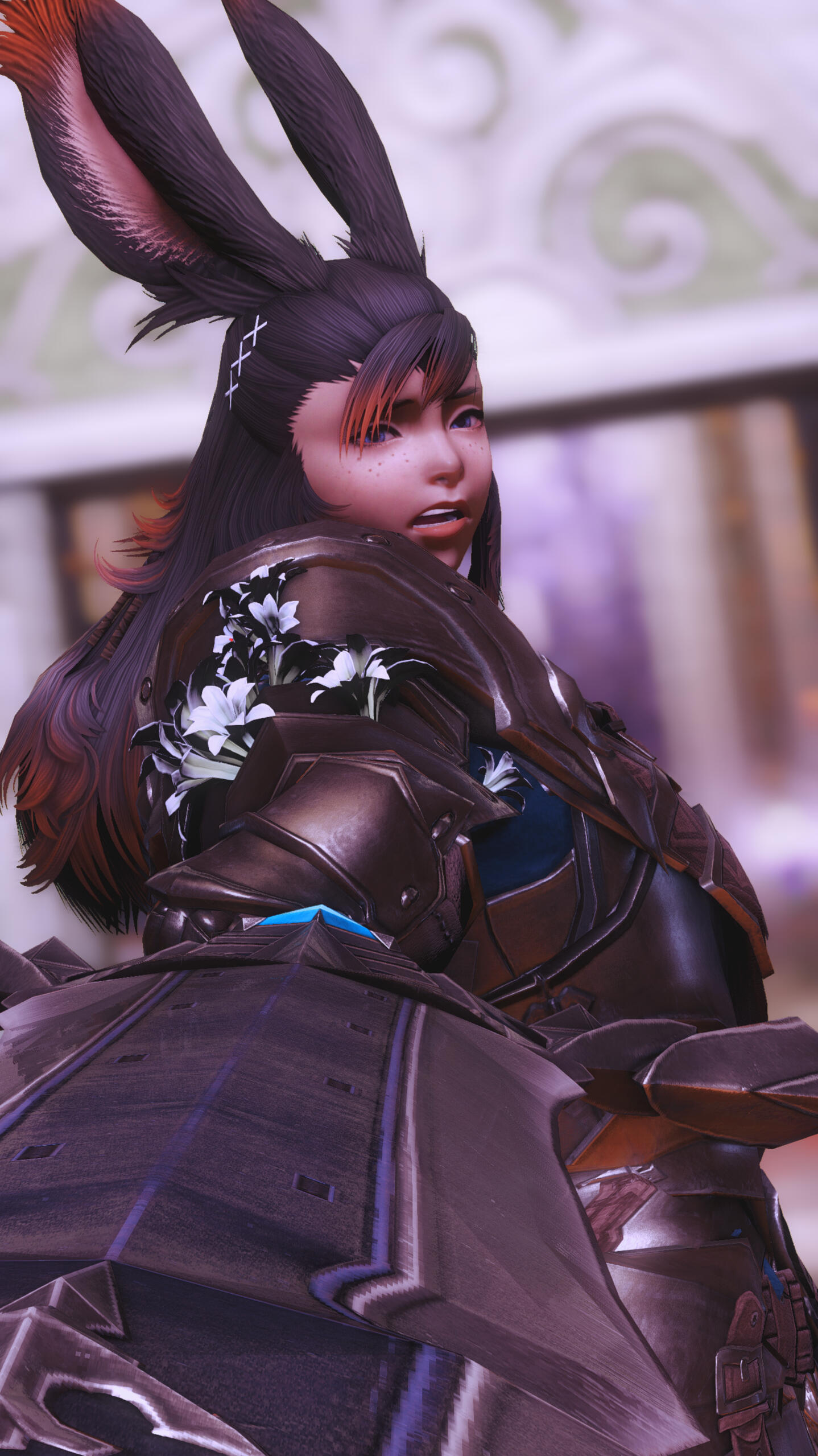 Having lost her only friend to her own emotions, Belle sets out on her own into the world, taking mercenary jobs where and when she can, traveling from city to city, meeting folk and making a name for her self on her own standing.Being dubbed "Lionsblade", Belle becomes a reputable sell-sword, and is hired for bigger and more important jobs, eventually resulting in her joining the Eorzean city-states efforts against the Garlean Empire.Absent from events in Hingashi, Belle does not take place in the efforts to reclaim Doma, instead she is hired by the Ala Mhigan Liberation Front, becoming an asset crucial in operations against the Garlean Empire.Before the end of the liberation of Ala Mhigo, Belle returns to Ul'dah for a short time to rest. In this time, she keeps to herself, and takes on just one mercenary job to cover her stay. As she arrives in Ul'dah, booking her room in the middle of the day, yet as she leaves the inn. part 5 of #story2From this point onwards, Belle returns to Bizzy's side, acting as her retainer once again, she works together with the mighty "warrior of light" to finish the fight in Ala Mhigo, where her body fails her during her seemingly final showdown with the enemy. Fainting in the field of battle, falling to a similar fate as her friends in the Scions have, she wakes up in The First.Belle's adventures in the first play out largely the same, with Ardbert being replaced by her shard, Allyssra, a mercenary and Crystarium city guard who falls in the same manner as usual, fighting against the Flood of Light, being the only spiritual survivor of her crew.Upon returning to the Source, Belle is welcomed back with open arms by a tearful Bizzy, who was worried she would lose her friend again, after just recently being reunited.
