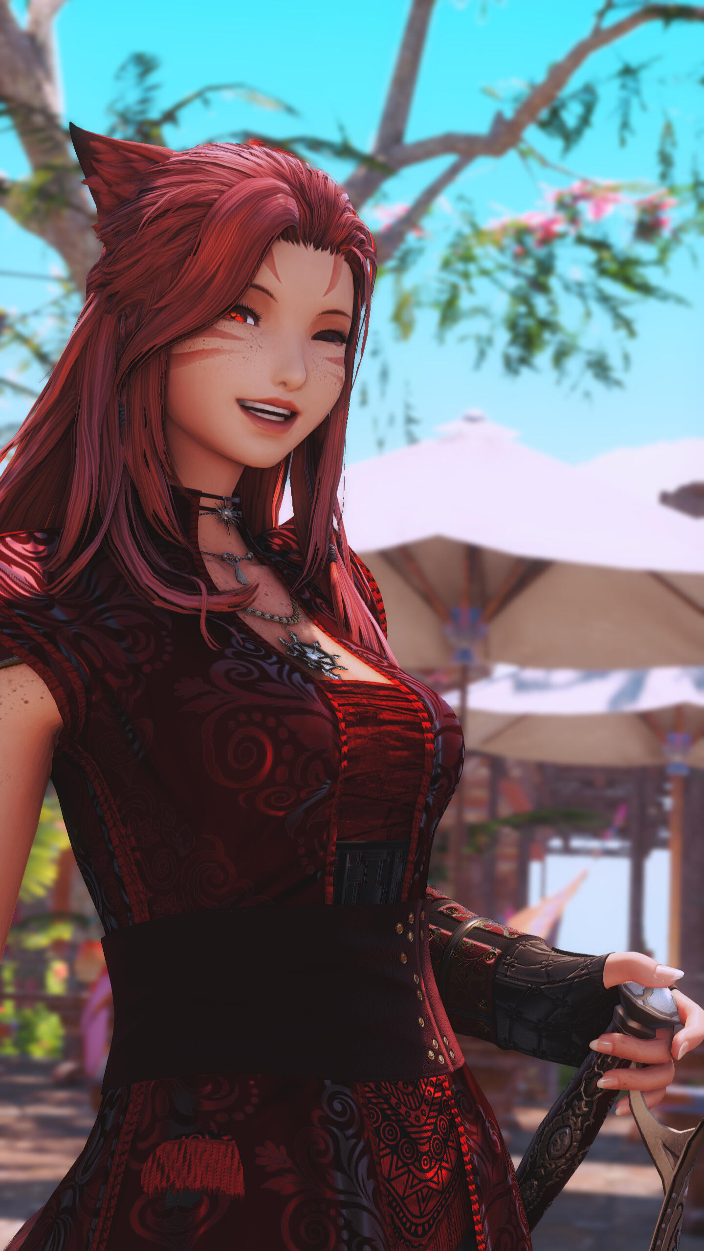 Cursed from birth, Envy is a Seeker of the Sun Miqo'te with ginger hair and one darkened eye.Born under the name Yari, her life was planned out to her eighteenth nameday, she was to be exiled from her village as the blackened iris she developed from birth was said to be a sign of a great curse, one that would bring misfortune on the village she was born in.This news was delivered to her on her sixteenth nameday, she was to be given a start in life, and as soon as she was of age, thrown out and never mentioned again. Refusing to accept such a fate, she stole her fathers katana, and set off a few days before her seventeenth summer. Traveling on the roads, scavenging for food, relying on the good faith of those she met, Yari eventually reaches the city of Ul'dah, where she continues her life in relative peace, the only improvement inside the city walls being that she were safe from monsters.Begging for coin and food, Yari eventually resolves to sell her fathers blade, giving her enough coin to eat for the coming weeks. Years pass, but her will to survive never falters, and even on days where she can't find suitable work, she relies on the kindness of the people around her to persevere.On what she remembers as her eighteenth nameday, with a heavy heart, she casts aside one of the last pieces of herself given by her parents, her name. Believing she deserves more than what she's been given and had taken from her, she takes up the name Envy, and with it, vows to live her life to the fullest, and defy the fate she was delegated to. It is on this fateful day that she meets a tall, cloaked woman with pointed ears. Towering above the young girl, she passes by and leaves enough coin for a night in the inn, and a heart meal.In the season that passes, Envy's curse has begun to eat away at her, almost entirely causing her vision in her left eye to decay. Her vision blurry, her coordination lacking, she is approached by the woman, as she has been every day since their first meeting.