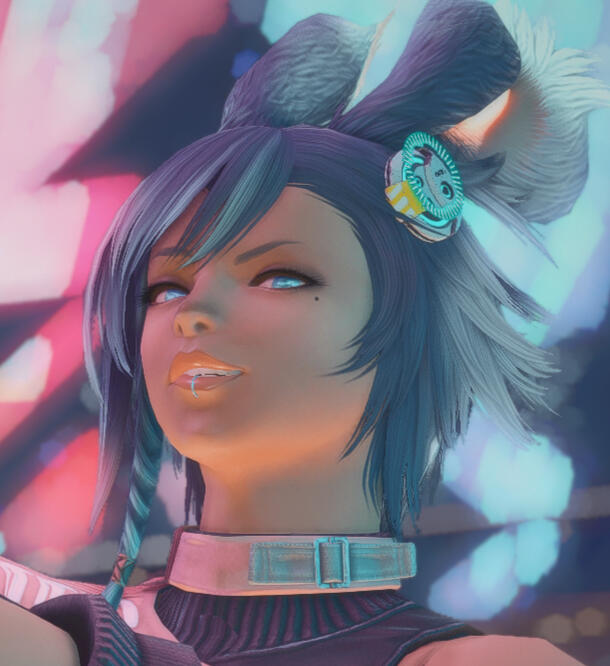 No longer donning the hood that was so familiar to the young miqo'te, the woman leans down, gives a hearty greeting, and introduces herself as Amelia, better known to the people of Ul'dah as Amethyst. Instead of her usual donation of gil, she offers a new hand to grasp, a chance to pull herself from the slum that had been forced upon her, a job at a small venue, tucked away from sight, but not hidden. The Lucky Rabbit, a venue of escorts comprised entirely of Viera, were in need of a bartender, and were willing to pay generously for such a role to be filled.Envy's stint as a bartender was short lived, her ability to make drinks of a high quality wavering past anything more than "put it in a glass", but her ability to talk with customers and be a lively presence was unmatched. Yearning for more, Envy soon was curious as to the work her closest friend partook in, and inquired about it. After learning about Amethyst's role in the venue as an escort, Envy was intrigued and enamored by the idea, bugging her and the owner for most of the next ten days until finally making headway, firstly, by way of getting to watch her friend as she works, and then in the form of her first Client.A meek but eager young man was to be her first client, with precautions in place to make sure Envy was okay. A guard stationed inside the room, her friend Amethyst there to guide her, and a long-time client comfortable and grateful for the opportunity.With her first job going well and even with her pay being severely reduced to cover the measures put in place for her trial, Envy was ecstatic and overjoyed with herself, and quickly realised this to be what she felt was right for her. Over the coming months, Envy would juggle shifts in the bar and bookings with clients, until the latter became her sole job in the venue. Envy would go on to become the only non-viera Escort assigned to The Lucky Rabbit.